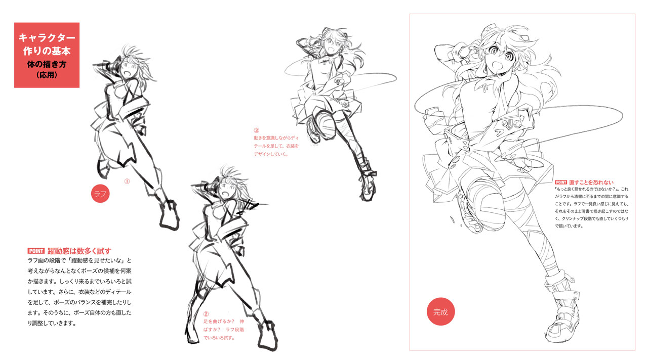 玄光社 超描けるシリーズ V Twitter 超描ネタ帳 躍動感のある絵を描くときには ポージングのパターンを何パターンを考えてみるのが重要 描き直すことを恐れずに描いていきましょう 赤津 豊さん Ak2ask 著 マンガ創作塾 構想 描き方 見せ方まで より