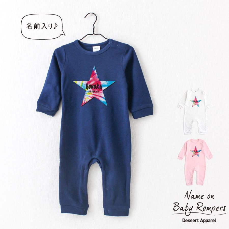 長袖 名入れ ロンパース ベビー服 スター03 タイダイ柄 星 名前入り 出産祝い ギフト 男の子 女の子 おしゃれ かわいい メール便送料無料 Nr0028 デザートアパレル 通販 Yahoo ショッピング